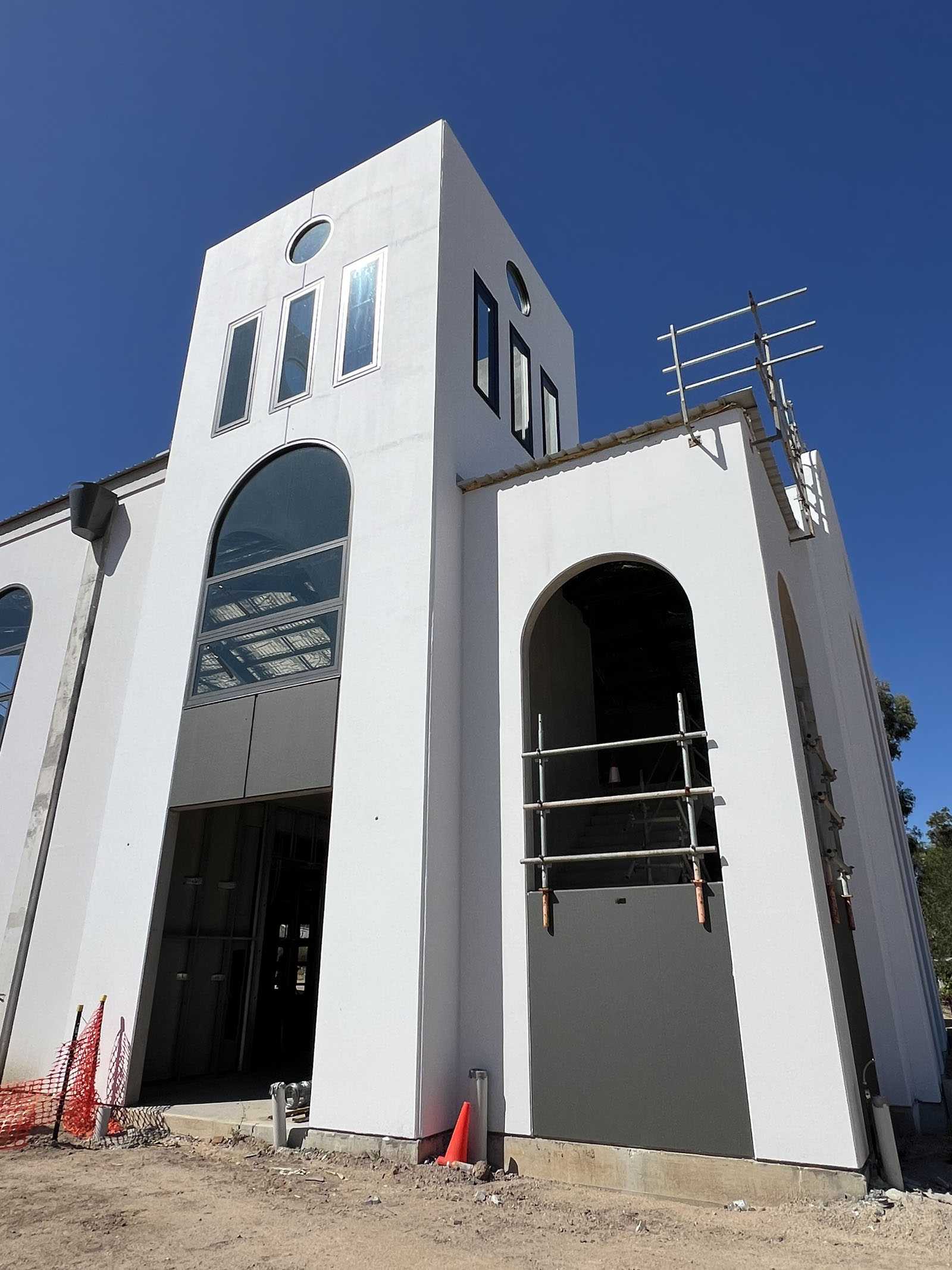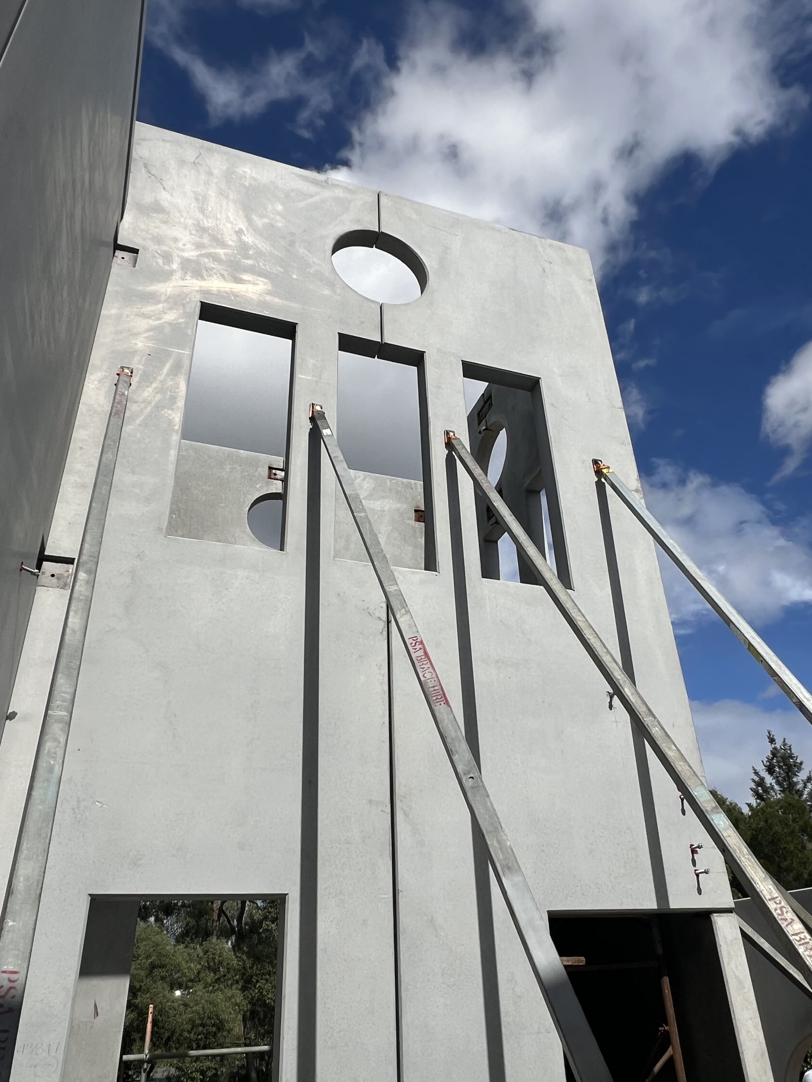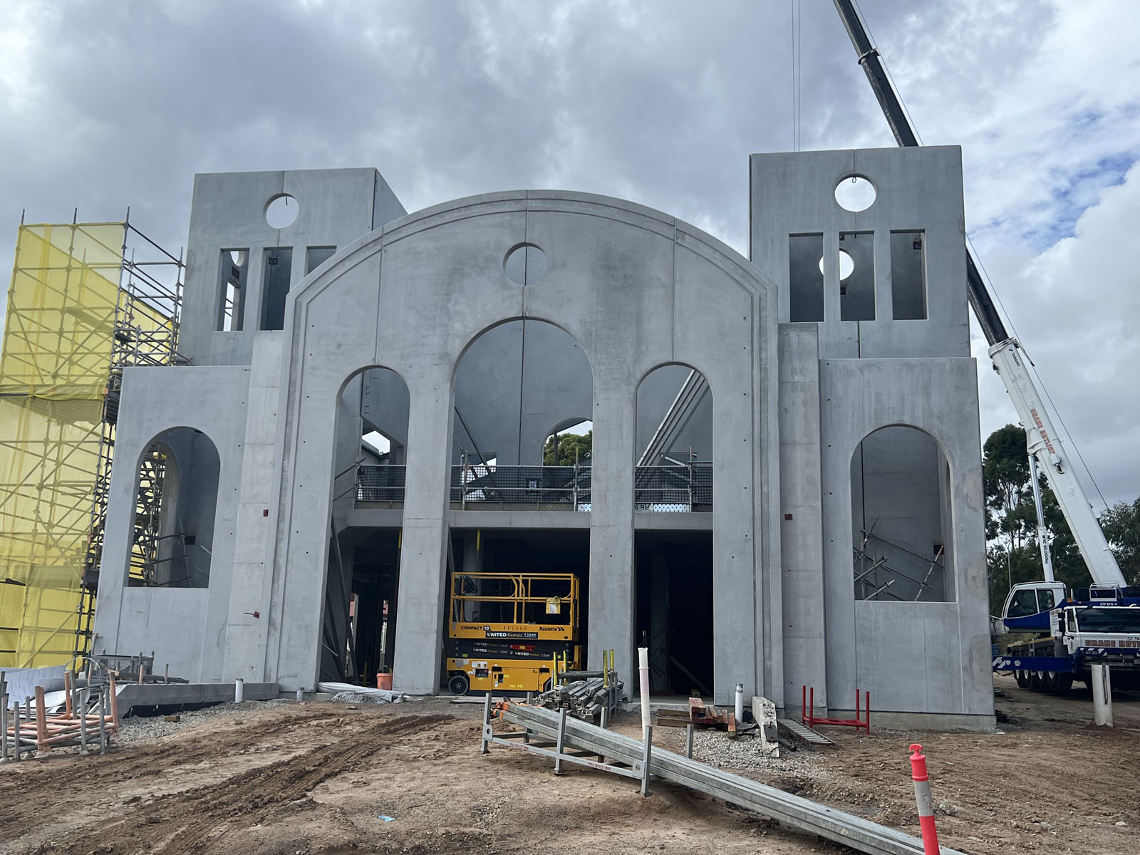 Evolution Precast Systems was engaged for the full supply, delivery & installation including cranage, on this landmark Coptic Church project in the Brisbane suburb of Calamvale. The complex detailing & temporary engineering of the large, cantilevered feature panels proved a great challenge, resulting in a beautiful final product.